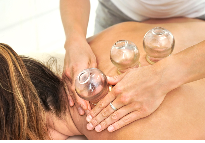 La technique des ventouses, issue de la médecine traditionnelle chinoise, consiste à appliquer des coupelles sur la peau pour créer une aspiration. :